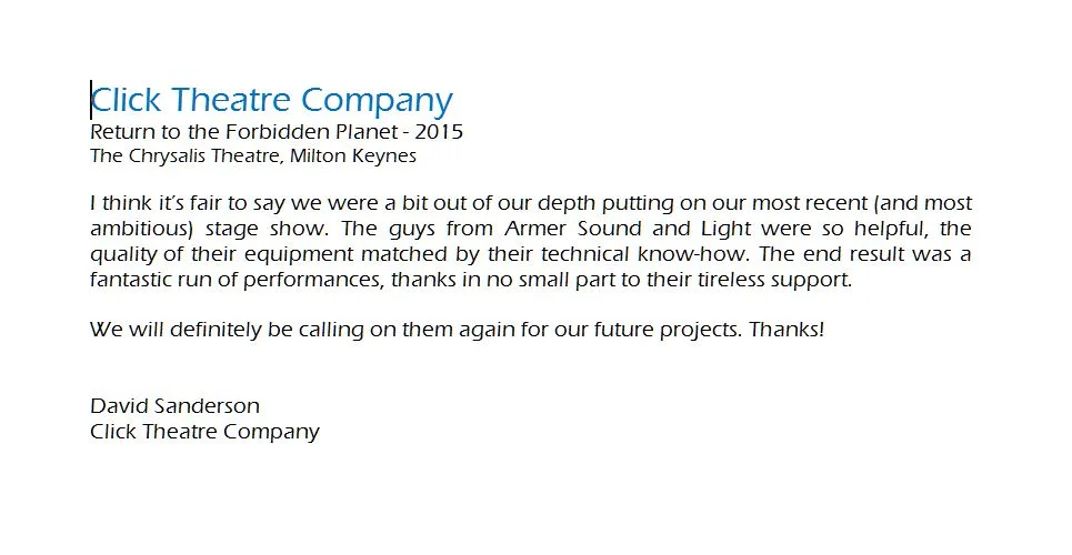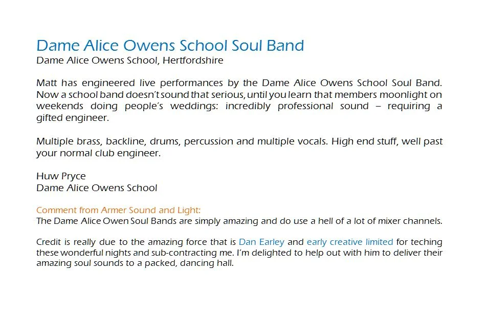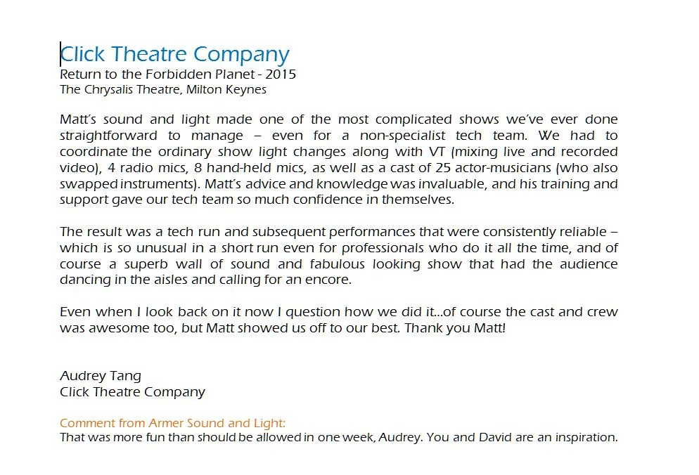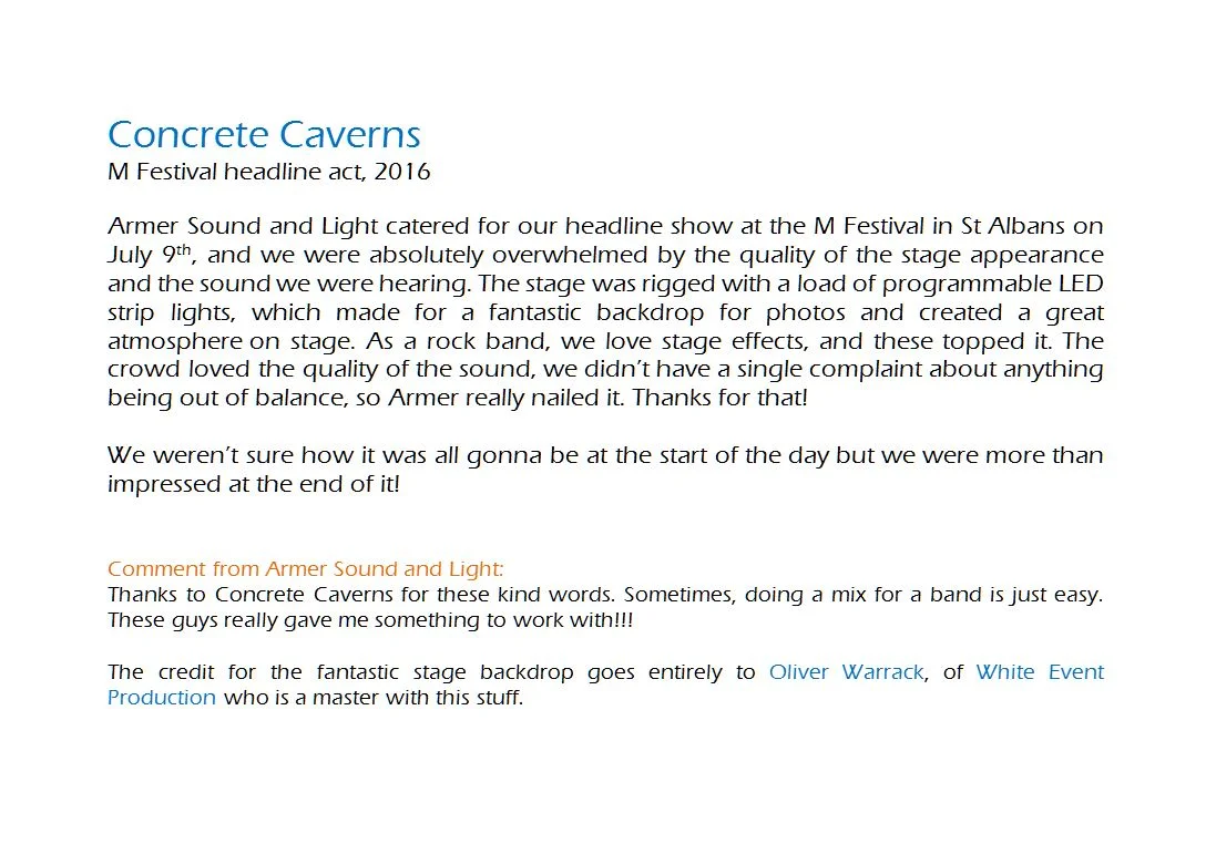 Copyright 2020 Armer Sound and Light Limited.